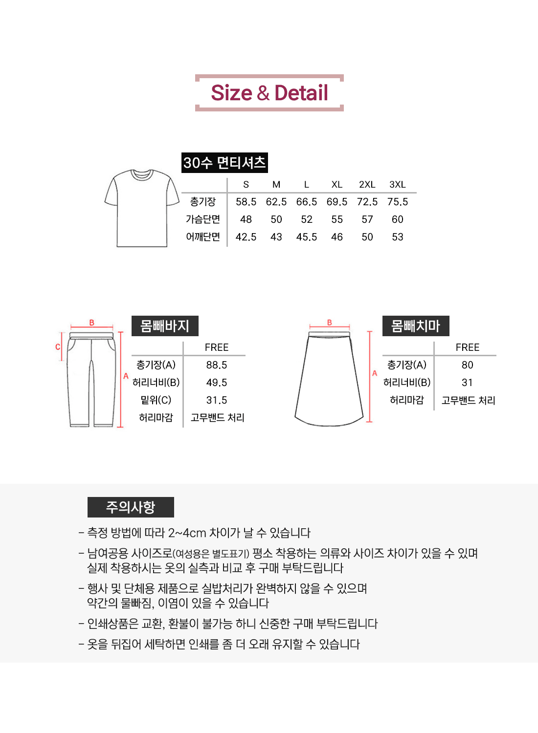 사이즈 및 수량