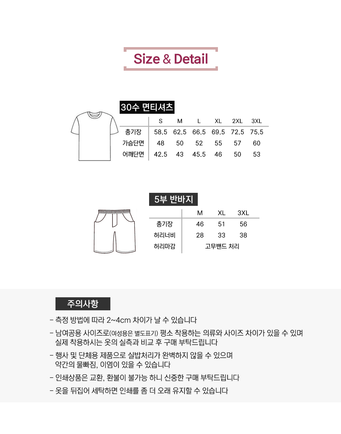 사이즈 및 수량