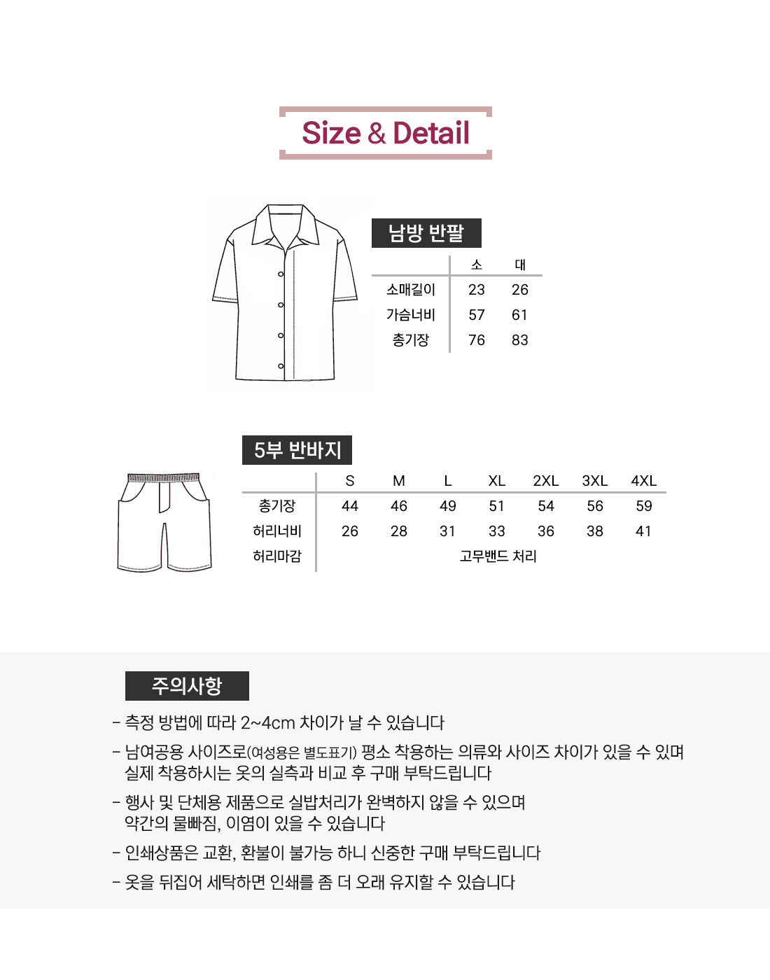사이즈 및 수량