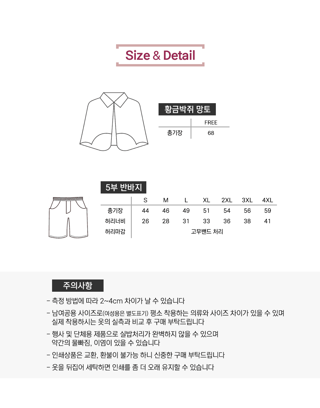 사이즈 및 수량
