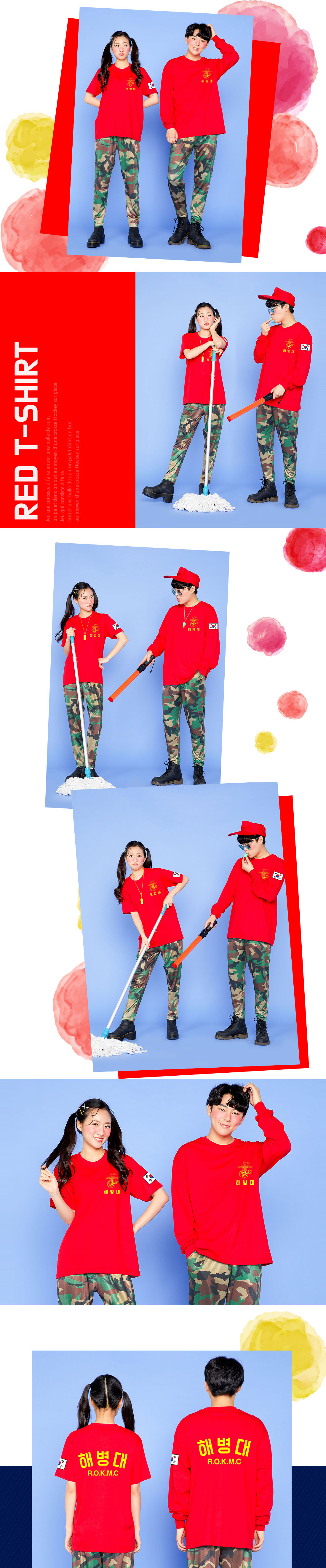 해병대 레드 반팔 라운드 면티셔츠 - 왼가슴,팔,등판 인쇄포함