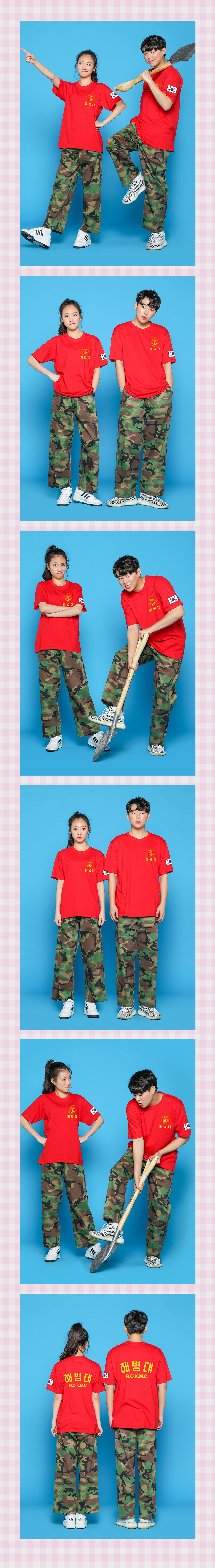 해병대 레드 반팔 라운드 면티셔츠 - 왼가슴,팔 인쇄포함
