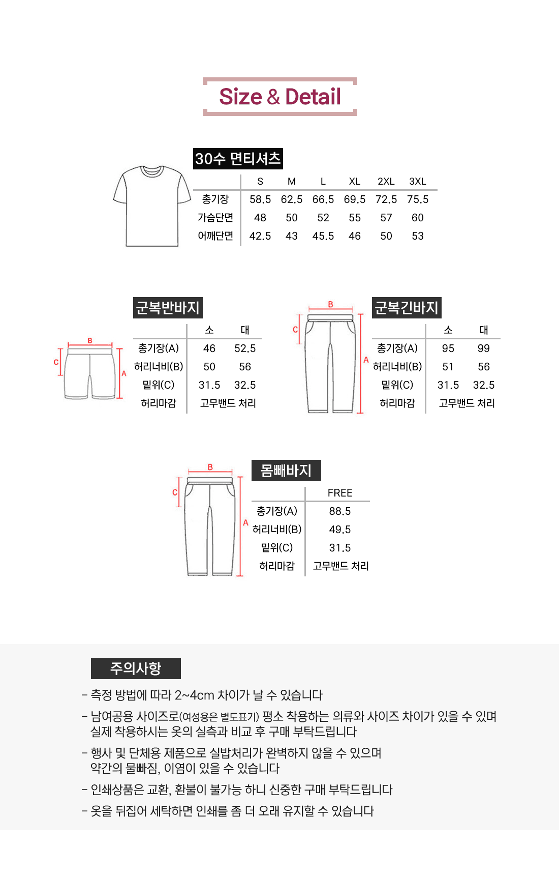 사이즈 및 수량
