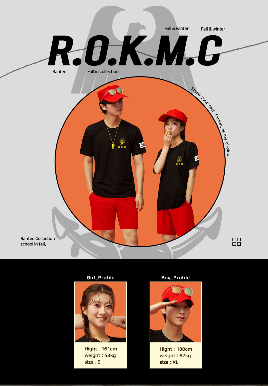 해병대 검정 반팔 라운드 면티셔츠 - 왼가슴,팔 인쇄포함