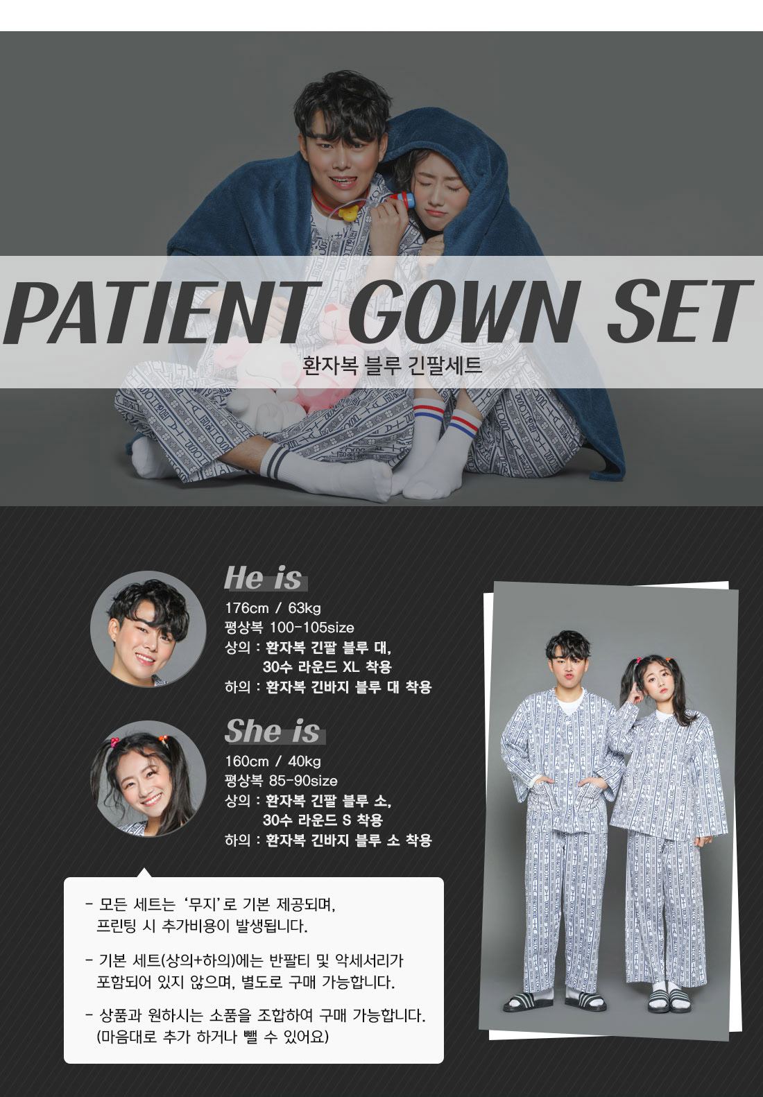 환자복 블루 긴팔+긴바지