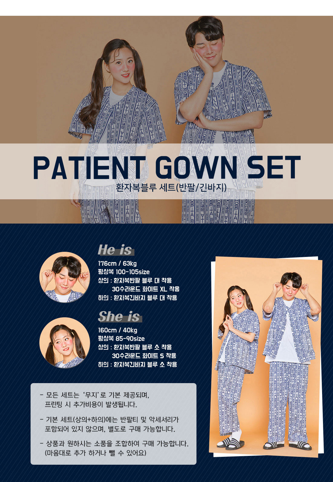 환자복 블루 반팔+긴바지