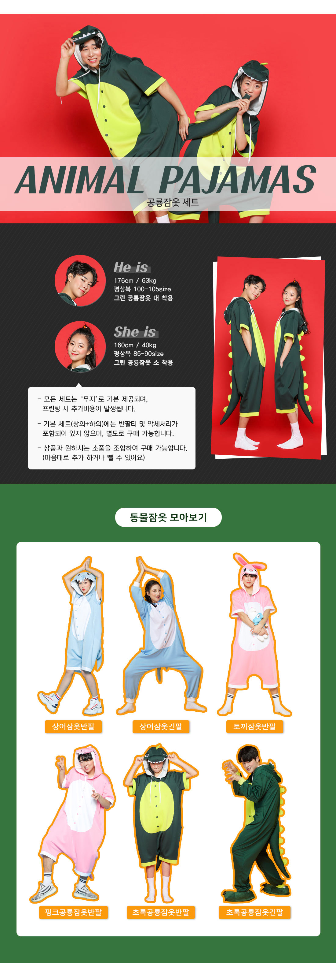동물잠옷반티 [초록공룡]