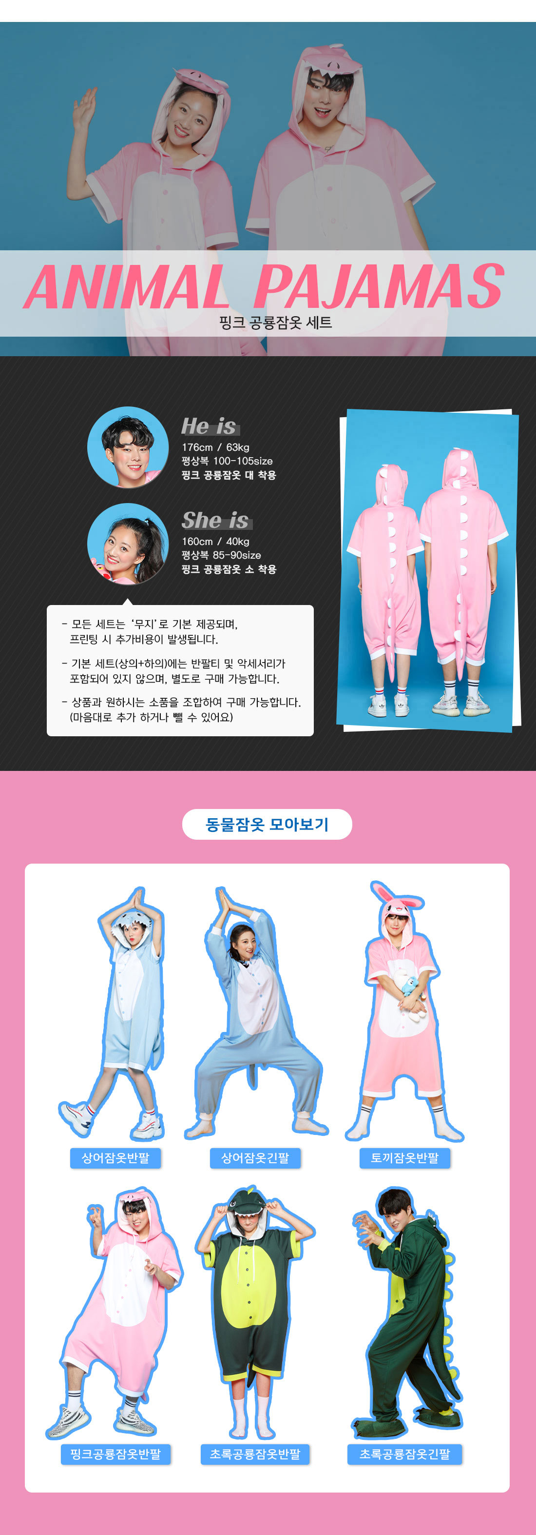핑크공룡 동물잠옷 반팔 [B-107] - 대 사이즈 일시품절