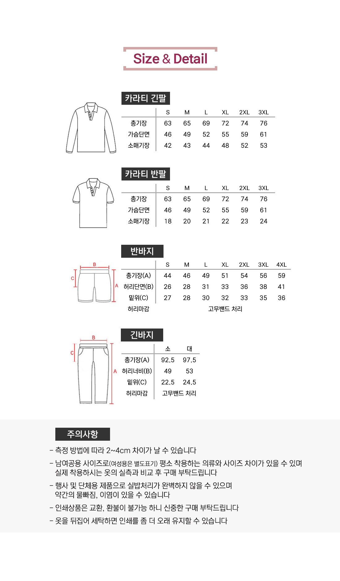 사이즈 및 수량