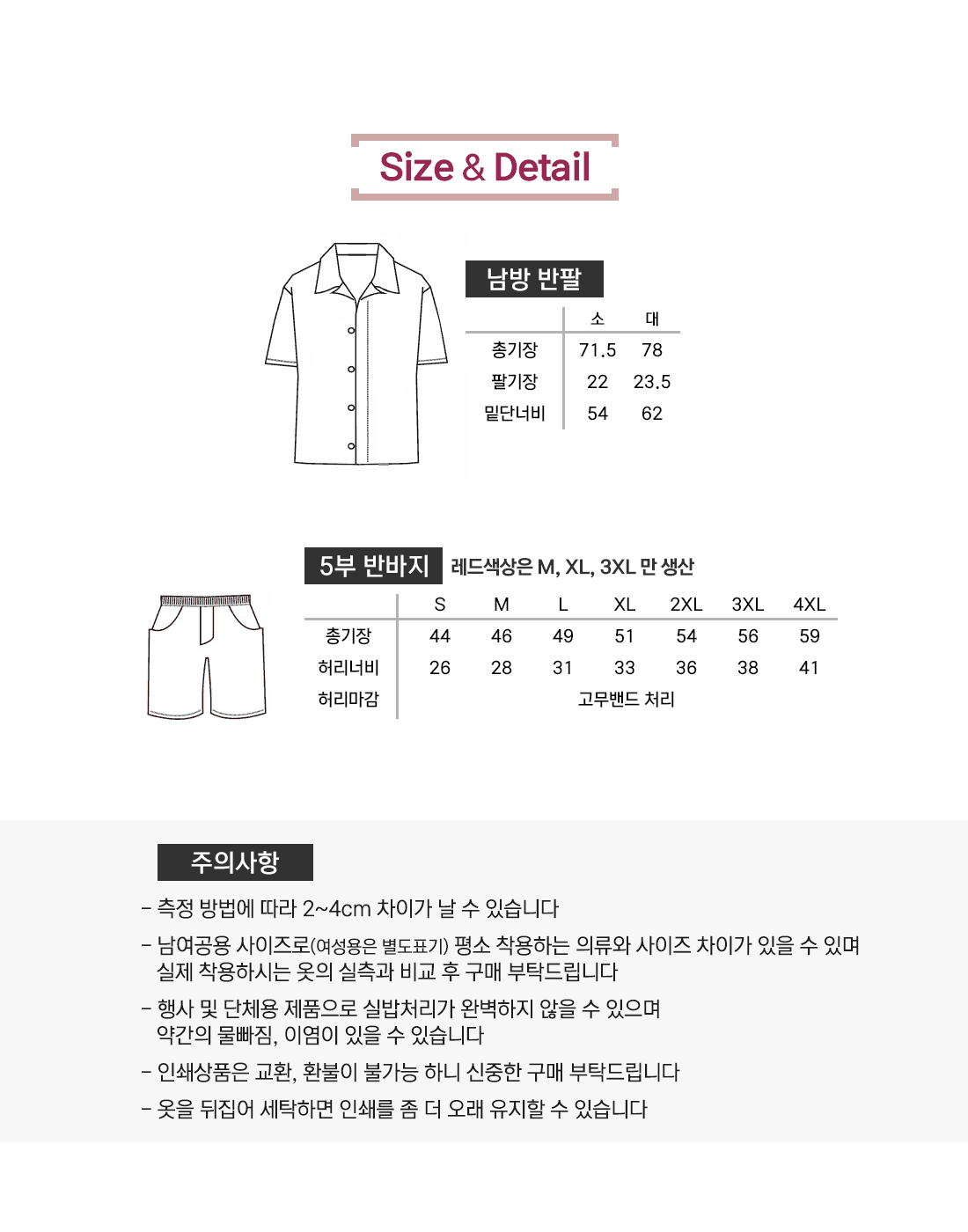사이즈 및 수량
