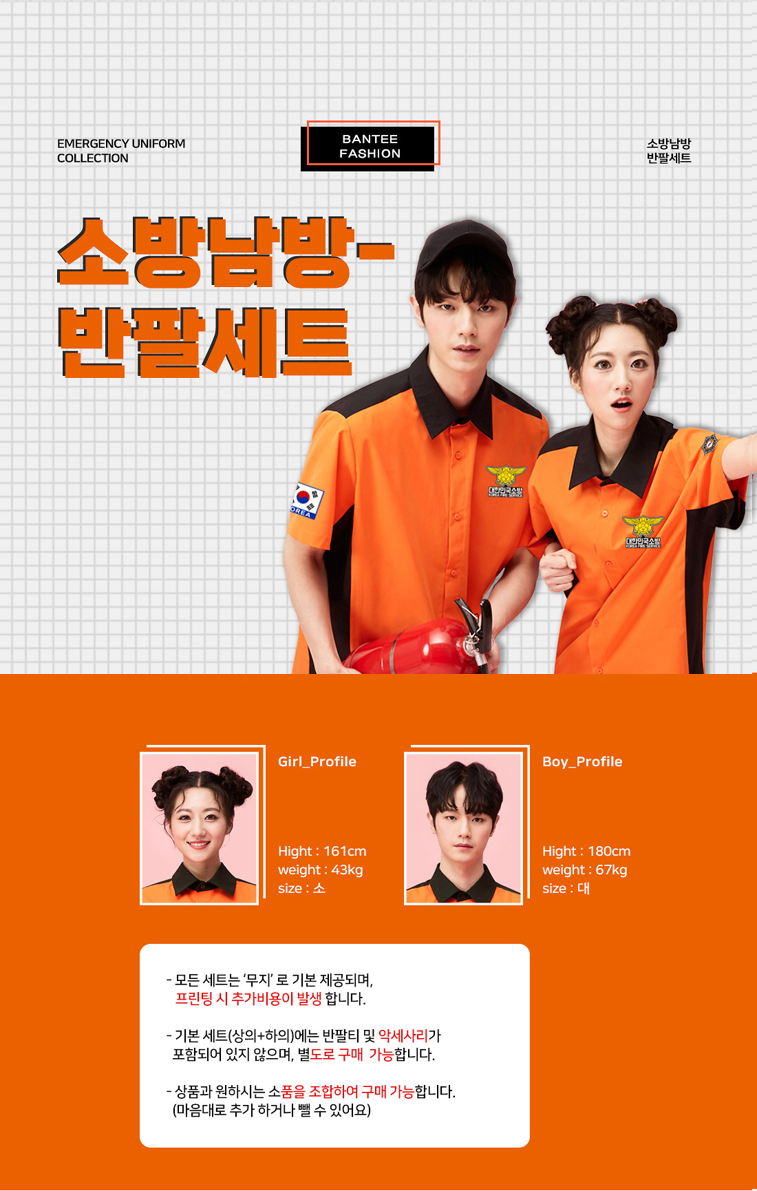 소방 반팔 남방 [오렌지] - 왼가슴,양팔 인쇄포함 [B-137]