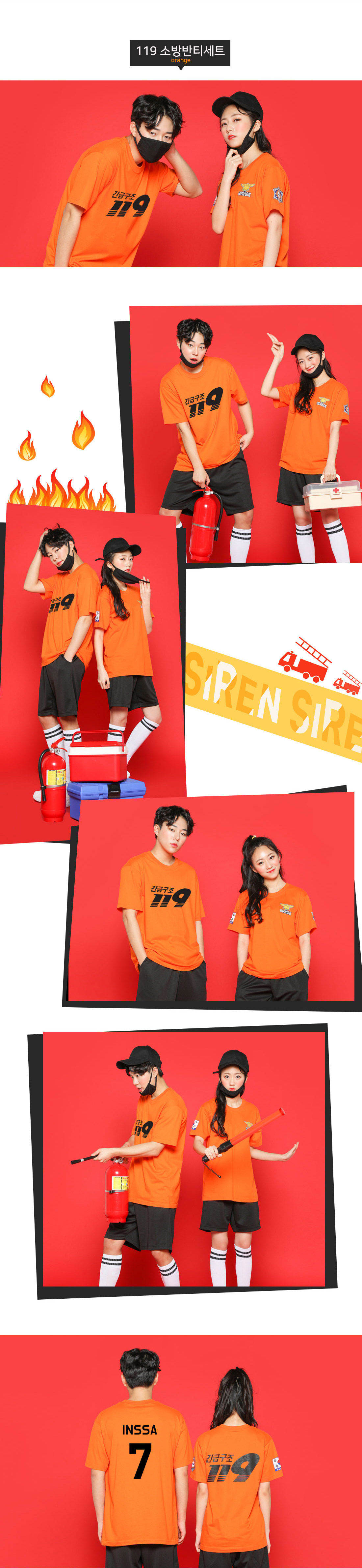 119 오렌지 반팔 라운드 면티셔츠 - 왼가슴/양팔 인쇄포함