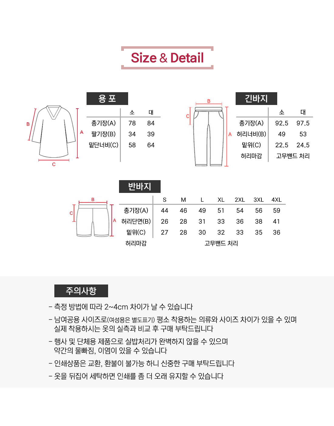 사이즈 및 수량