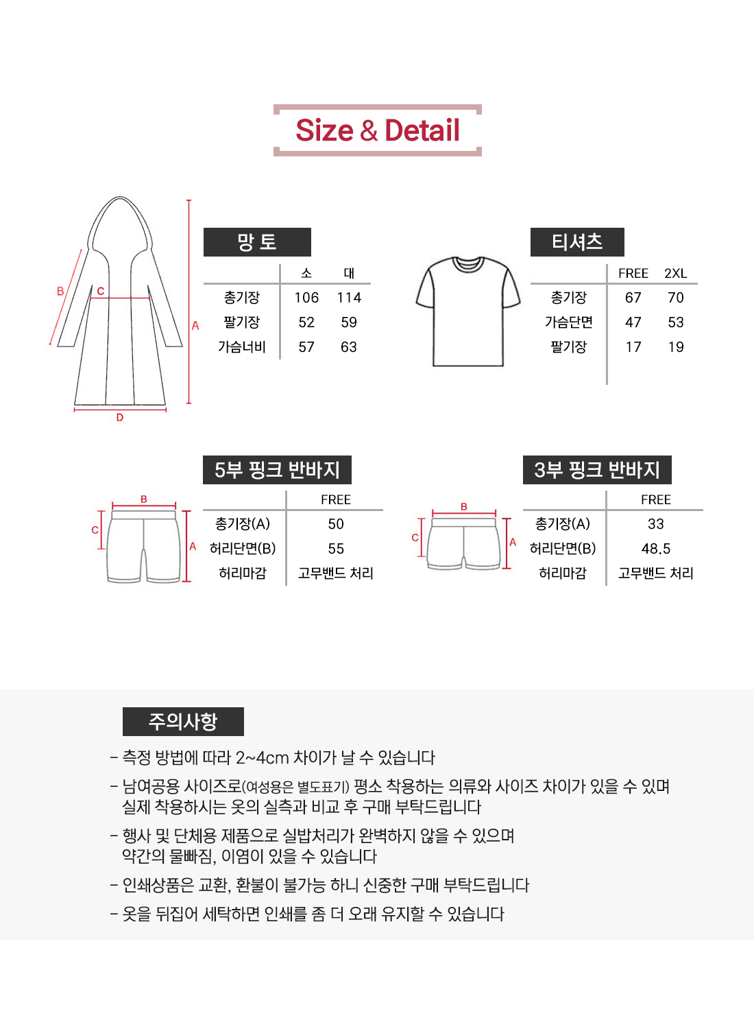 사이즈 및 수량