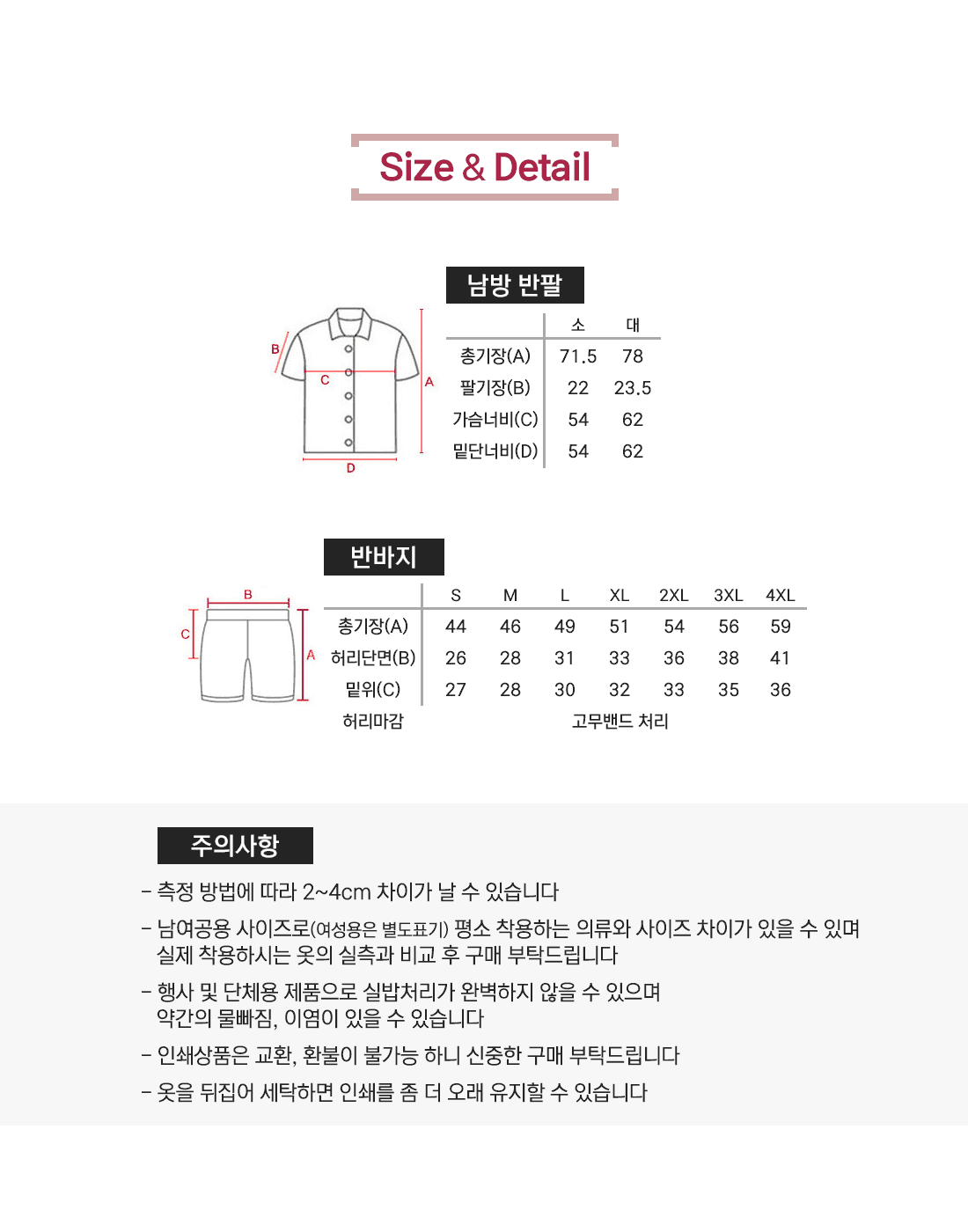 사이즈 및 수량
