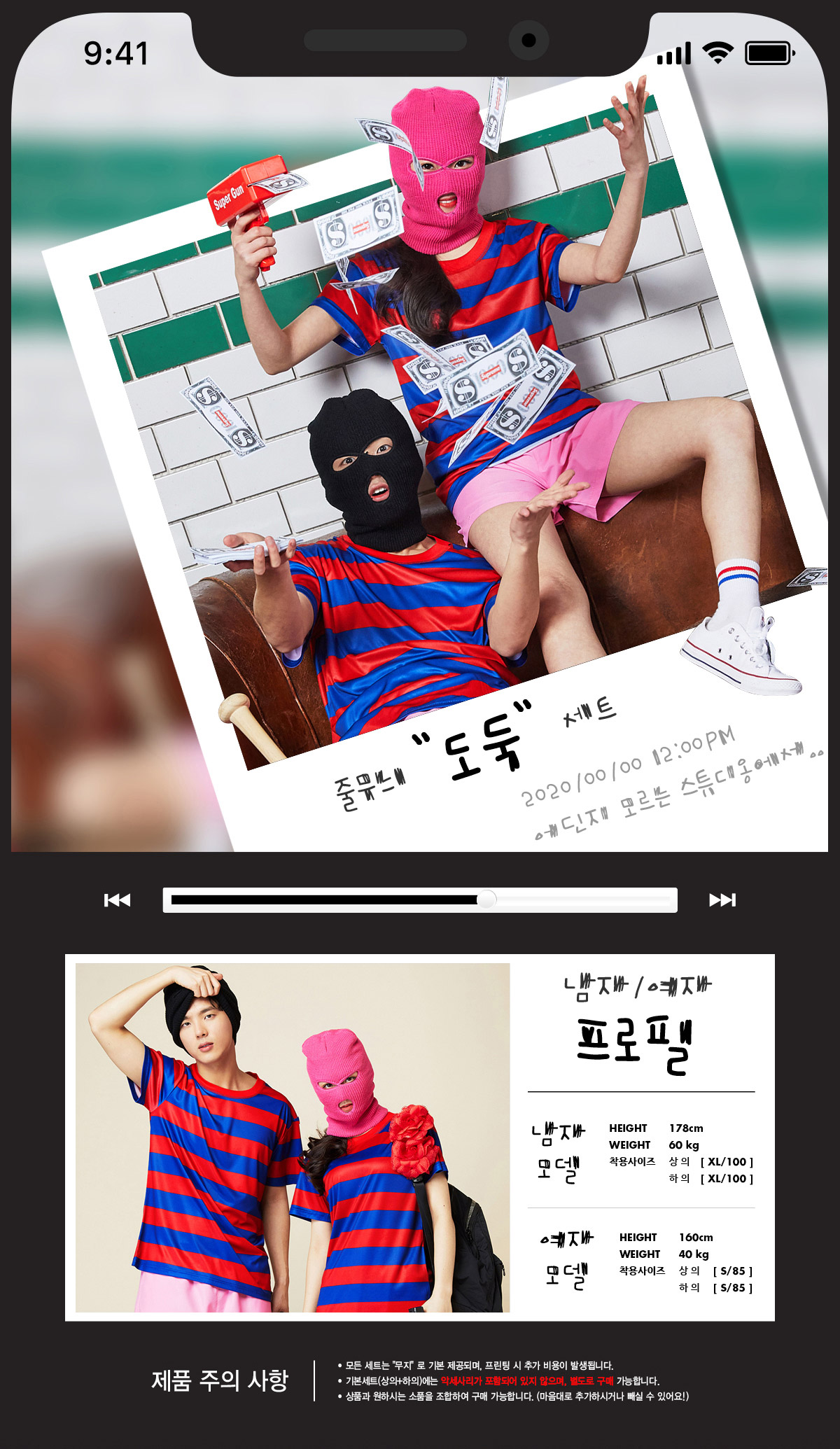 도둑 줄무늬 티셔츠 세트