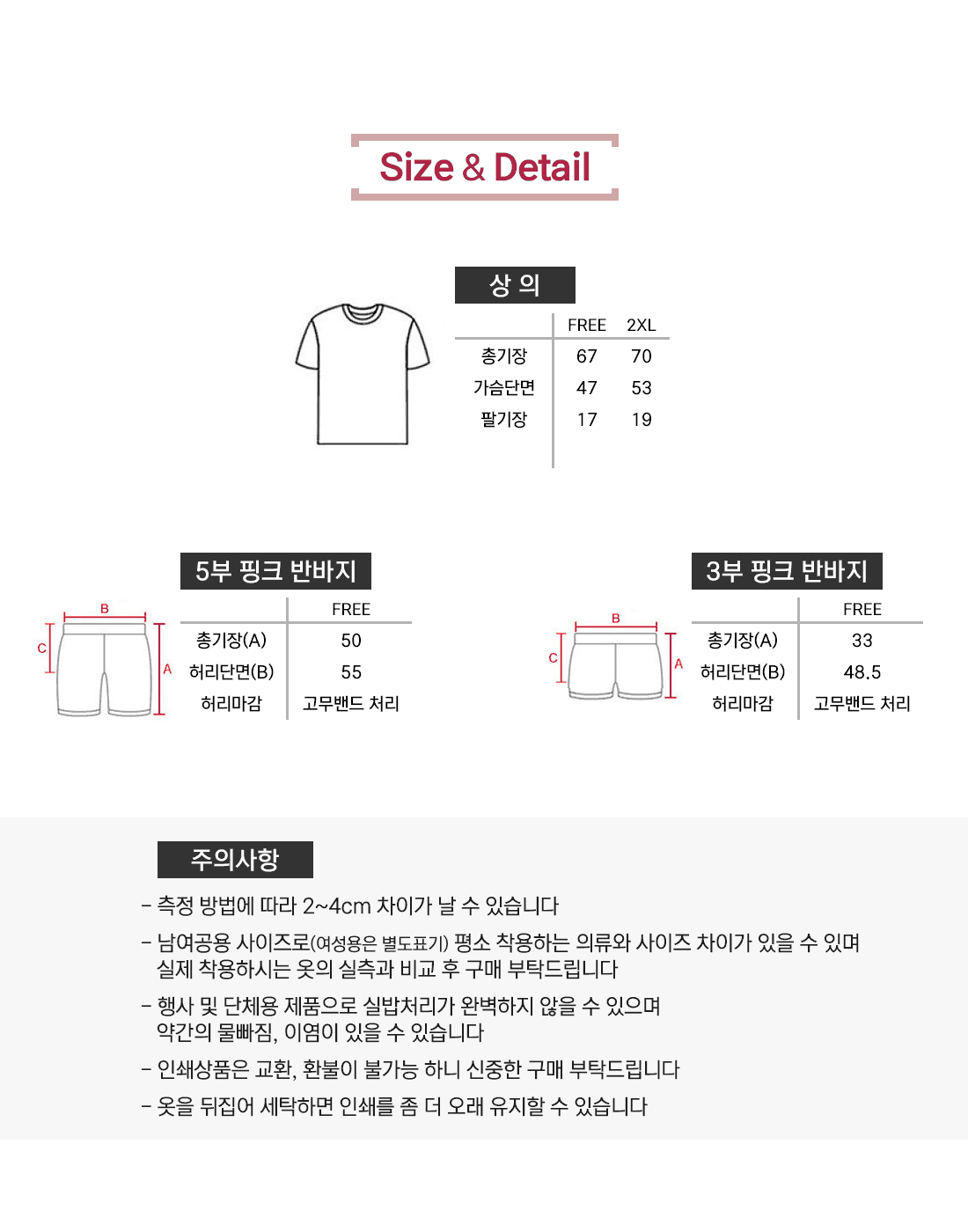 5부 반바지 (남여공용-핑크) [F45-1]
