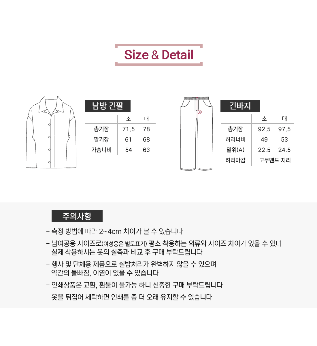 사이즈 및 수량