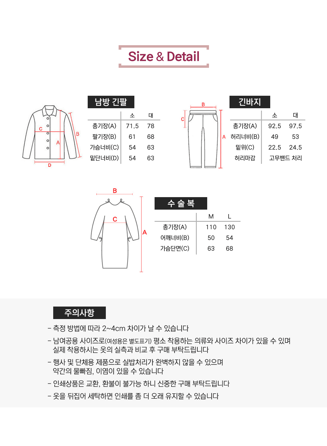 사이즈 및 수량