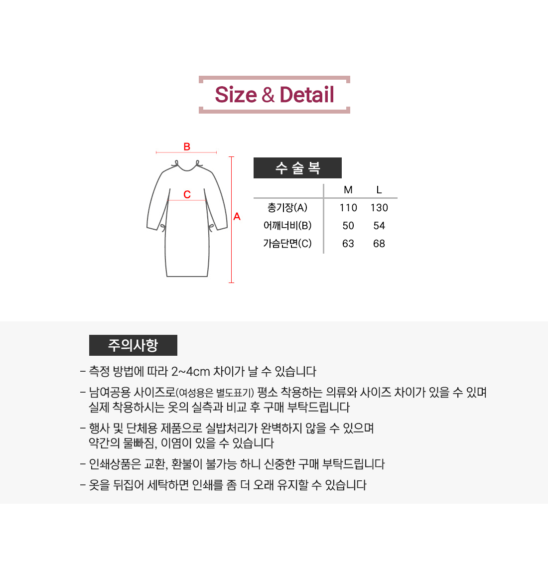 사이즈 및 수량