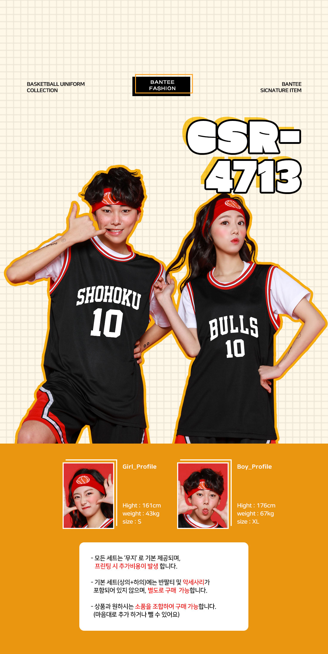 농구복 상하 SET - 앞면만 인쇄 추가 가능 [B-4713]