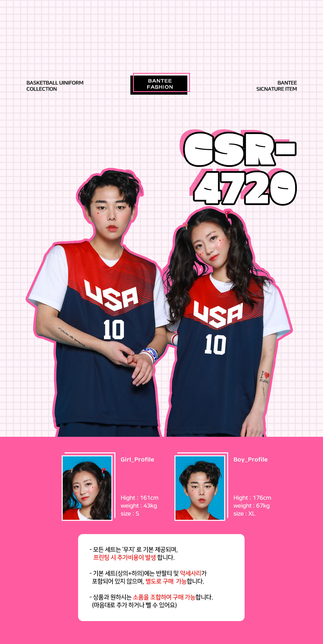 농구복 상하 SET - 앞면만 인쇄 추가 가능 [B-4720]