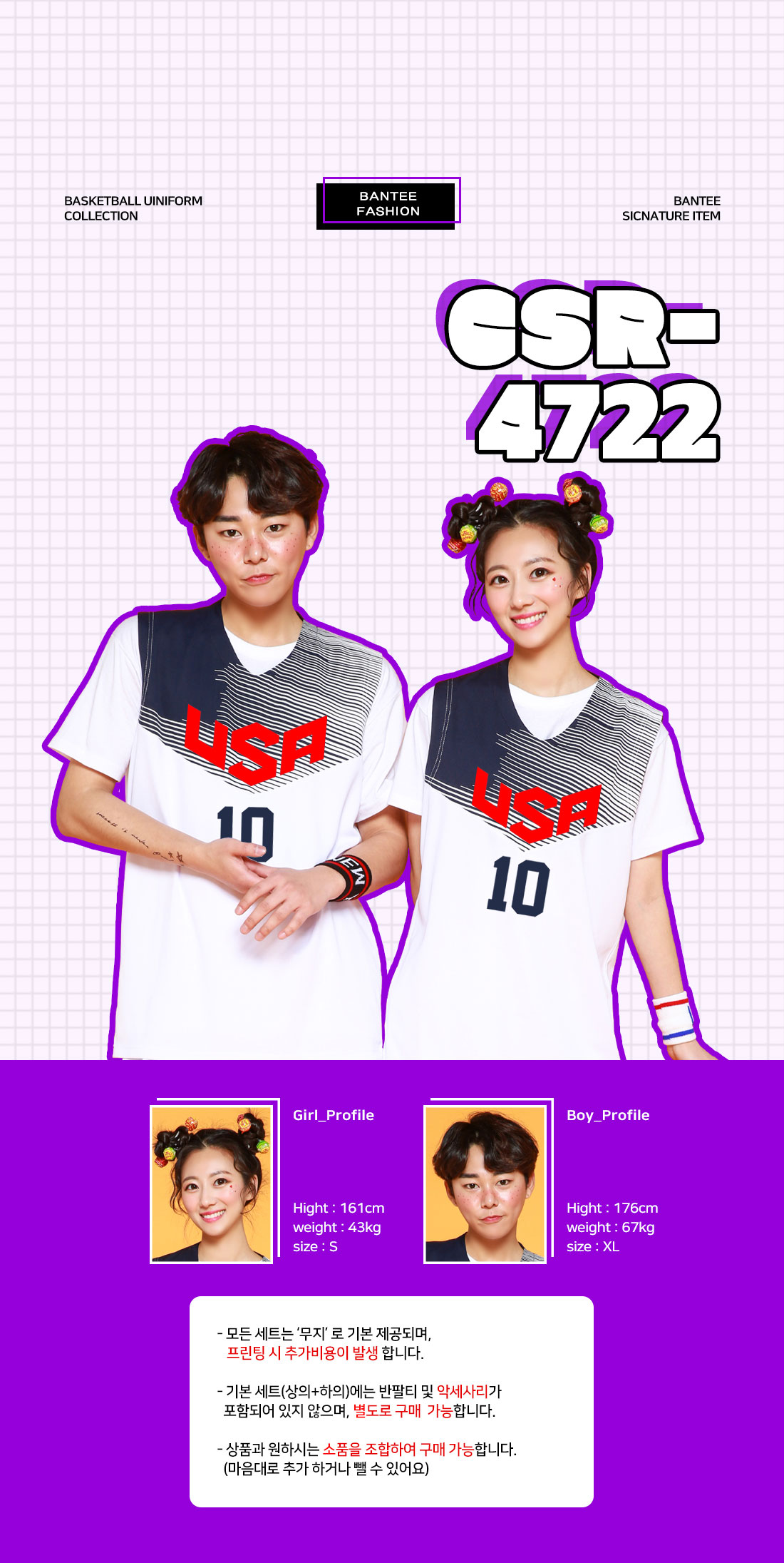 농구복 상하 SET - 앞면만 인쇄 추가 가능 [B-4722]