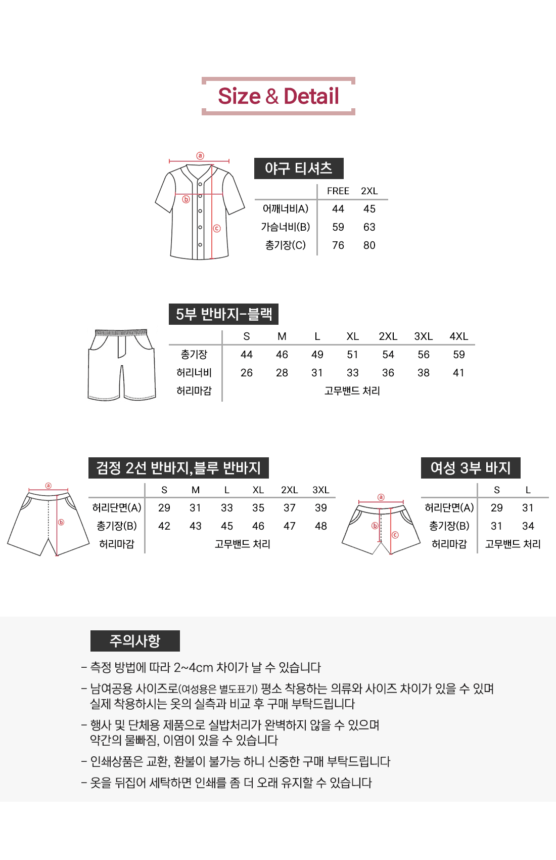 사이즈 및 수량