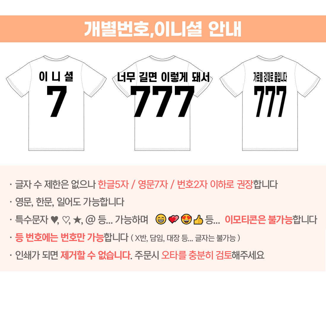 이니셜등번호+(앞:별도)