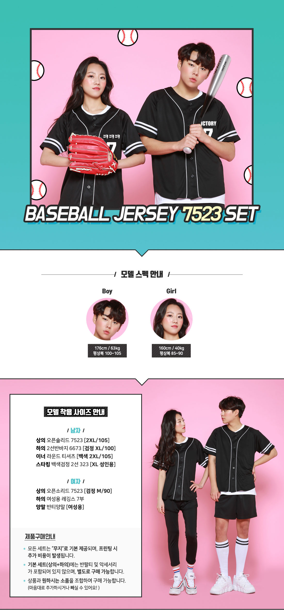 야구 티셔츠 - 앞,뒤 인쇄 추가 가능 [블랙] [C-7523]