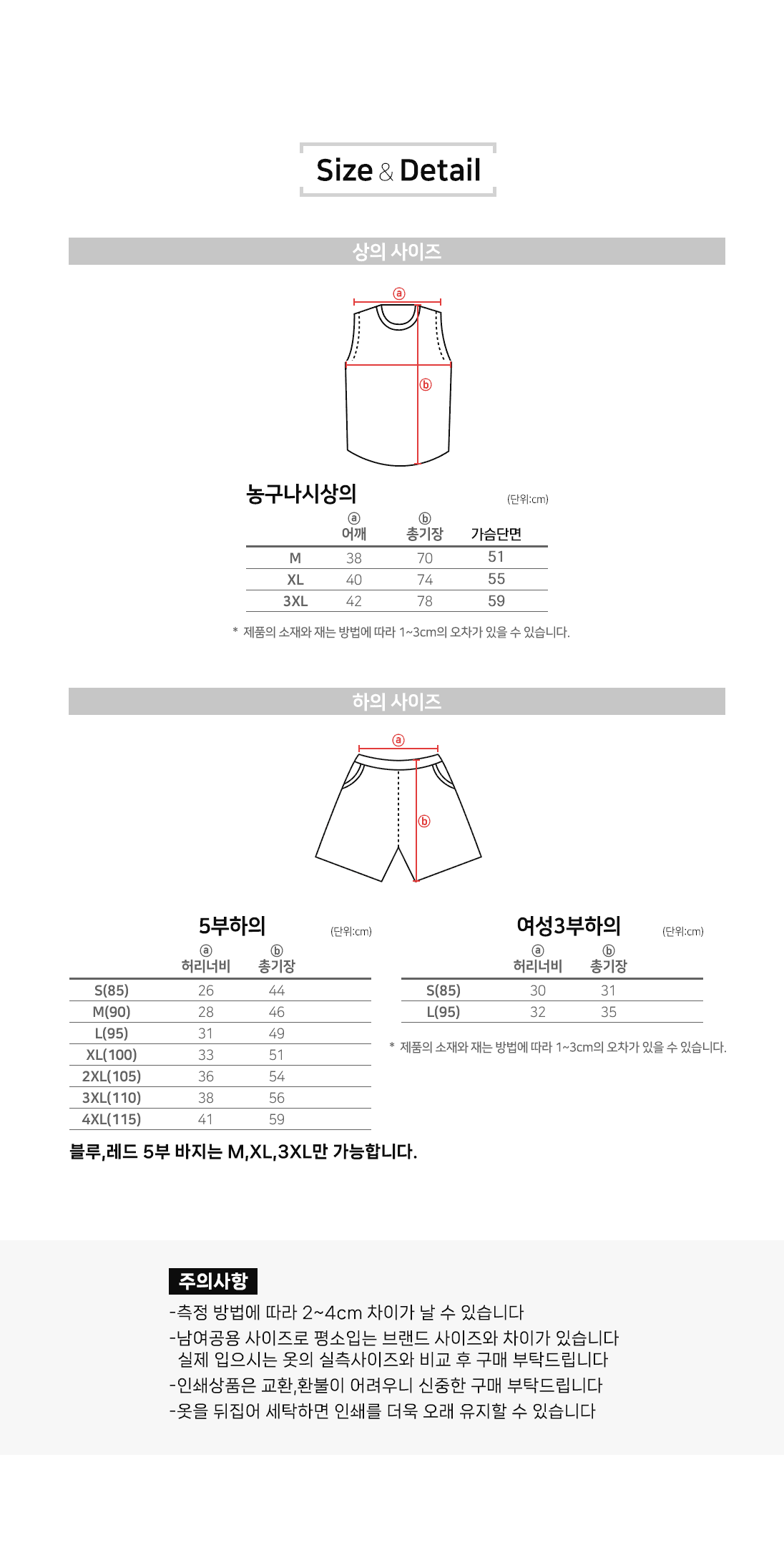 사이즈 및 수량