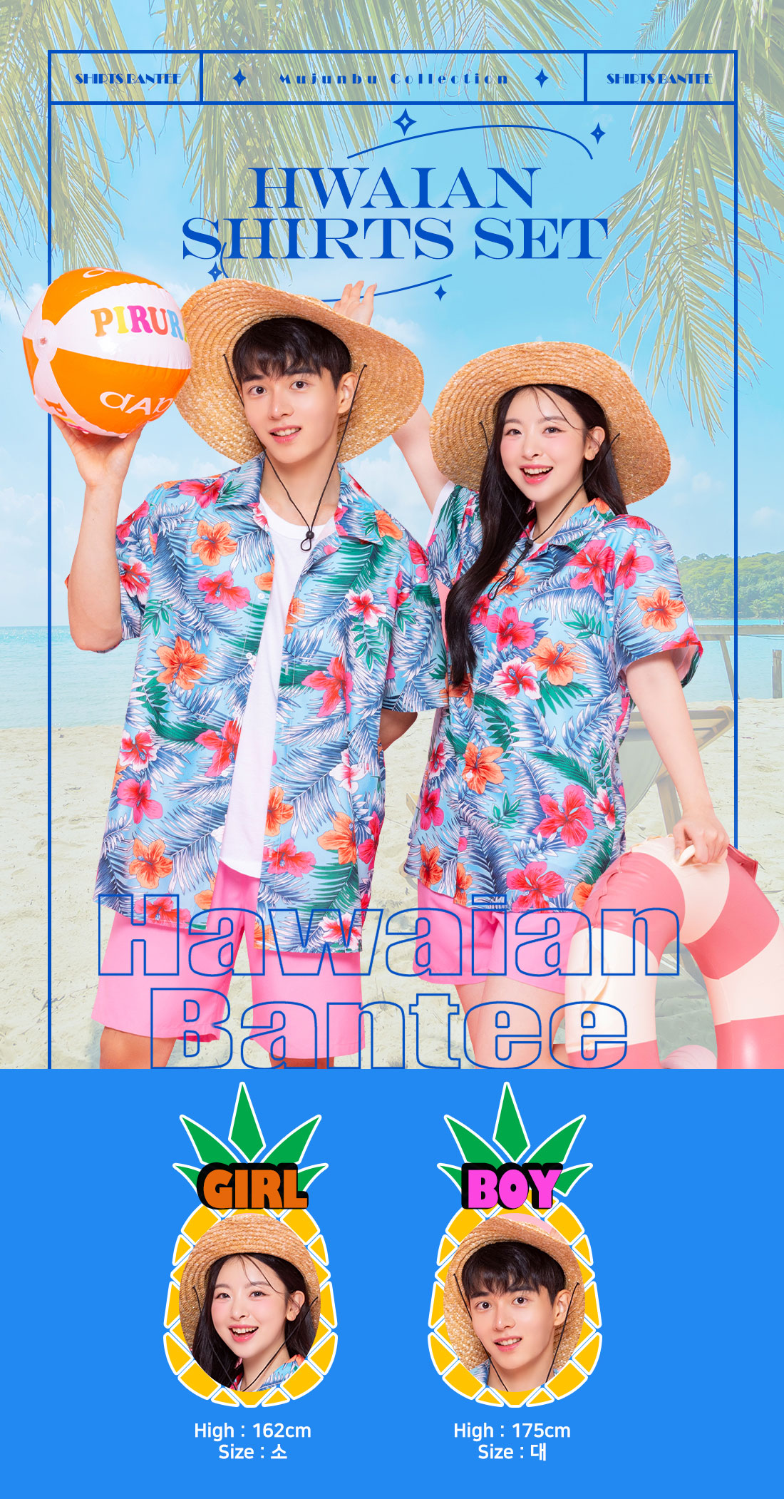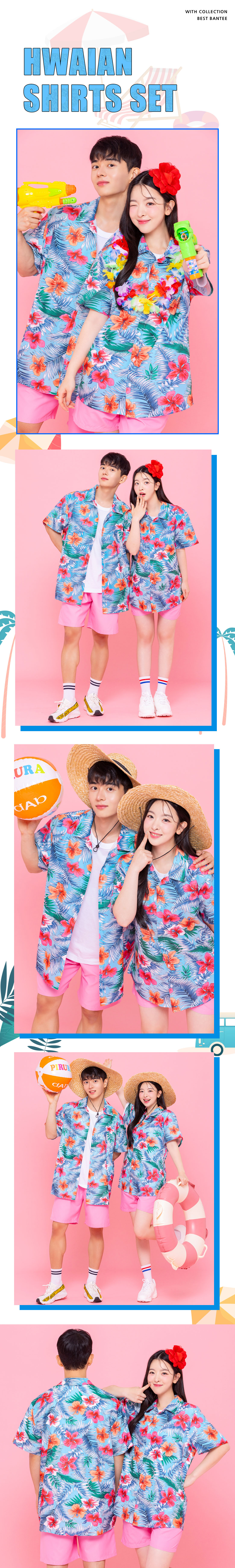 하와이안 꽃남방 반티 [블루]